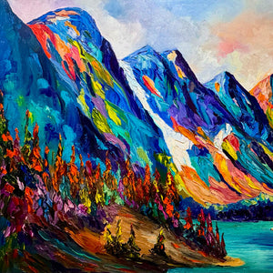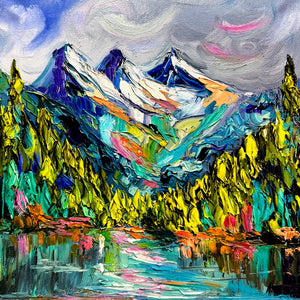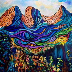 From my "Cabin in the Woods" studio, I paint with the belief that art has the power to lift, connect, and awaken something joyful in all of us. Surrounded by nature’s rhythm and beauty, I create in vibrant, expressive colour — often with cotton candy skies and kaleidoscopic patterns — to reflect the wonder I see in the world.
