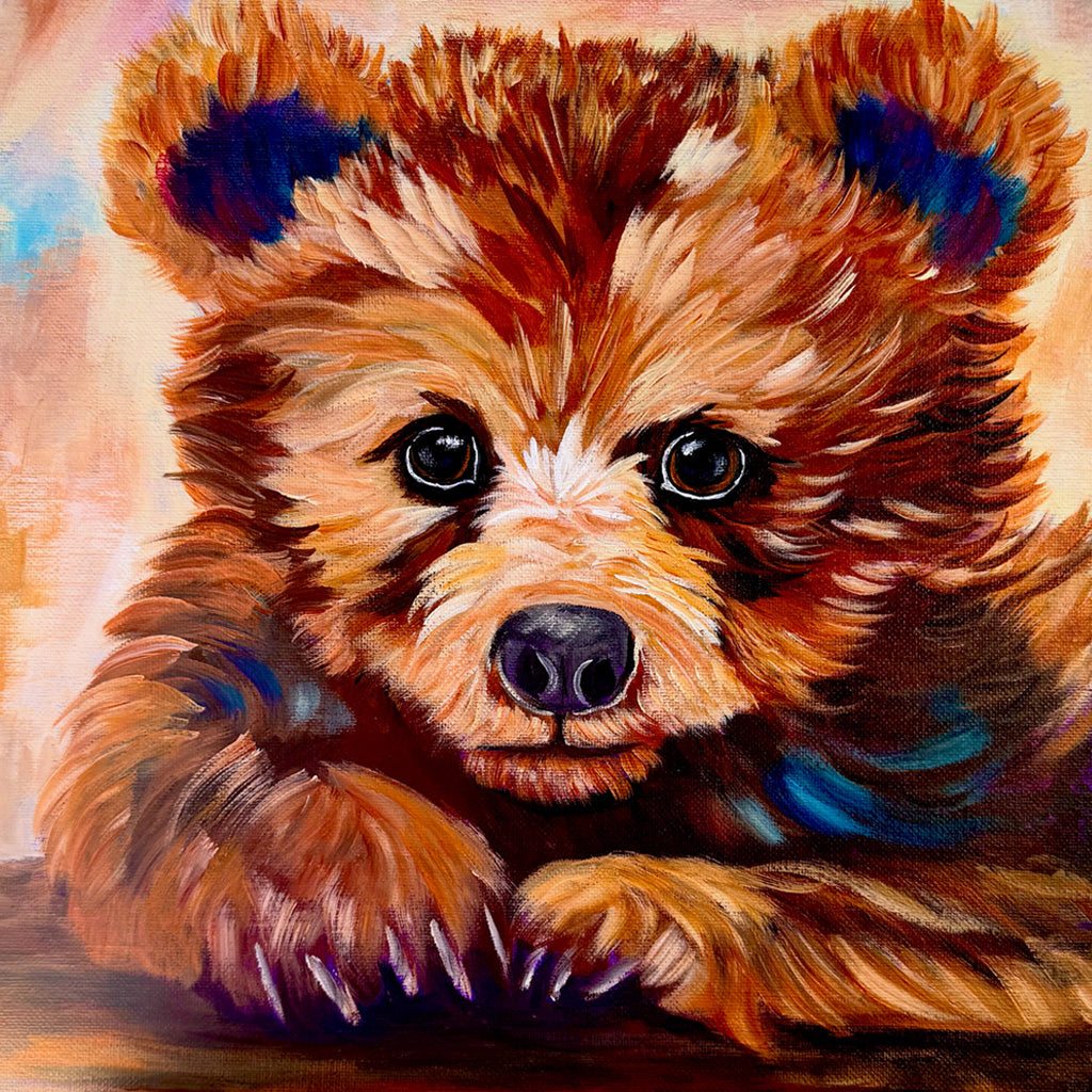 Bear Hugs Original little bear painting on 12" x 12" gallery wrap canvas