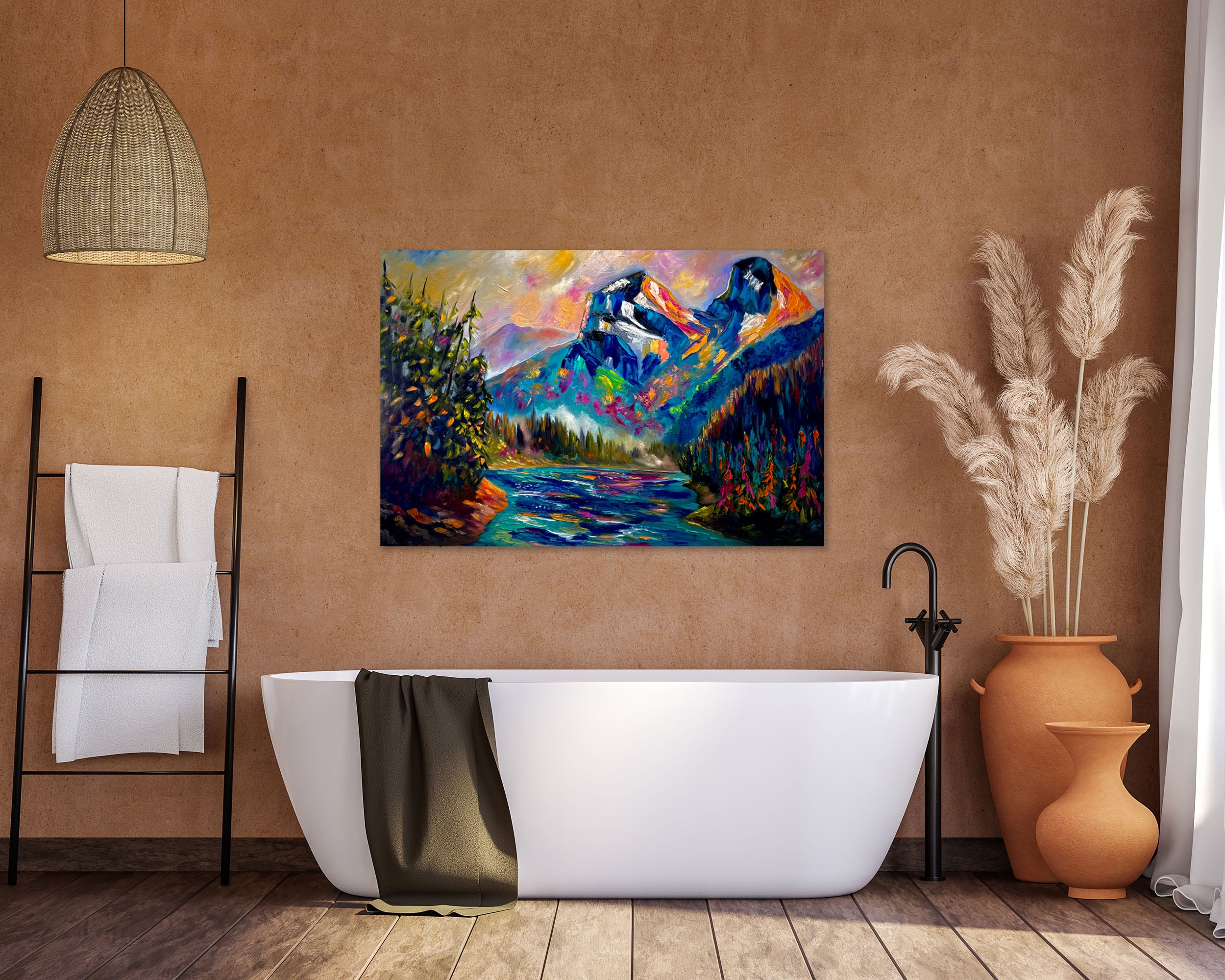 The river winds through it all, carrying those colours downstream like a secret the mountains whispered to the water.