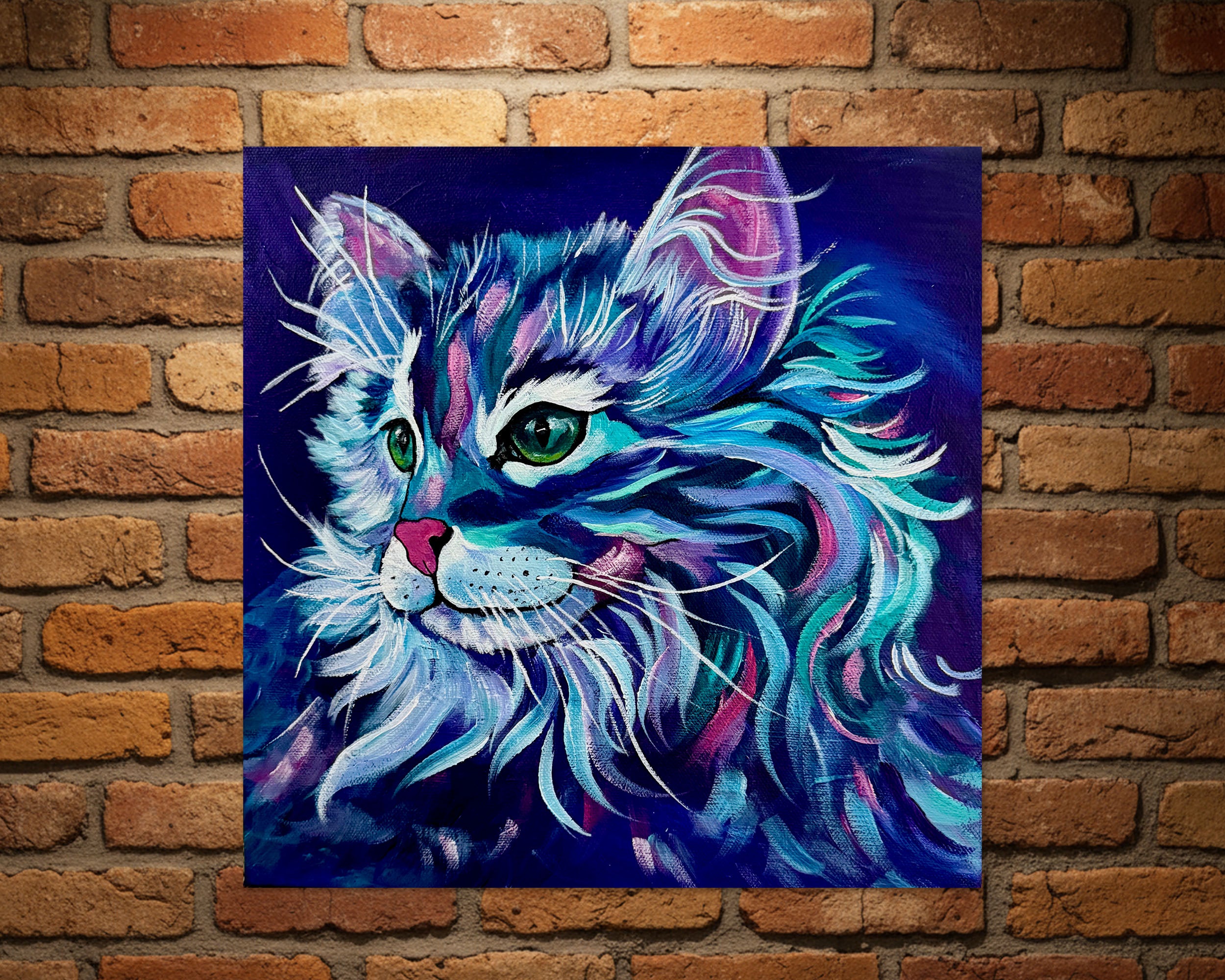 Whiskers and Wonder Original Cat painting on 12" x 12" gallery wrap canvas